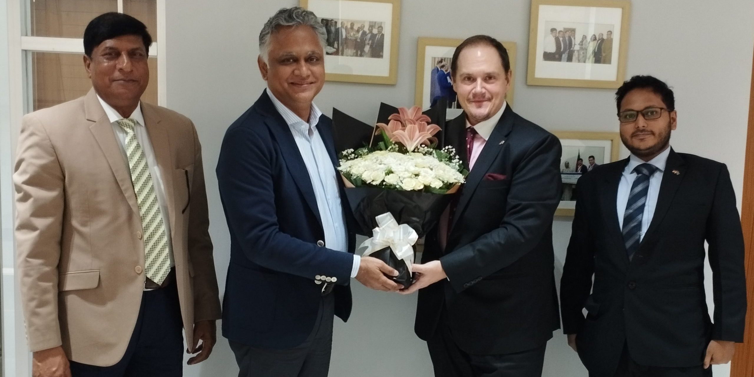 H.E. Mr. Jan-Rolf Janowski, Honorable Charge De’ Affaires of the Embassy of the Federal Republic of Germany, called on President, LFMEAB Mr. Syed Nasim Manzur at the association office on Tuesday, 11th July 2023. Both dignitaries explored solid partnership possibilities to brand Bangladesh’s leather products and footwear sector in Germany. They emphasized presenting a true and BALANCED narrative on the present state-of-the-art manufacturing facility in Bangladesh. LFMEAB looks forward to advancing private-sector collaboration with the German embassy in Bangladesh.