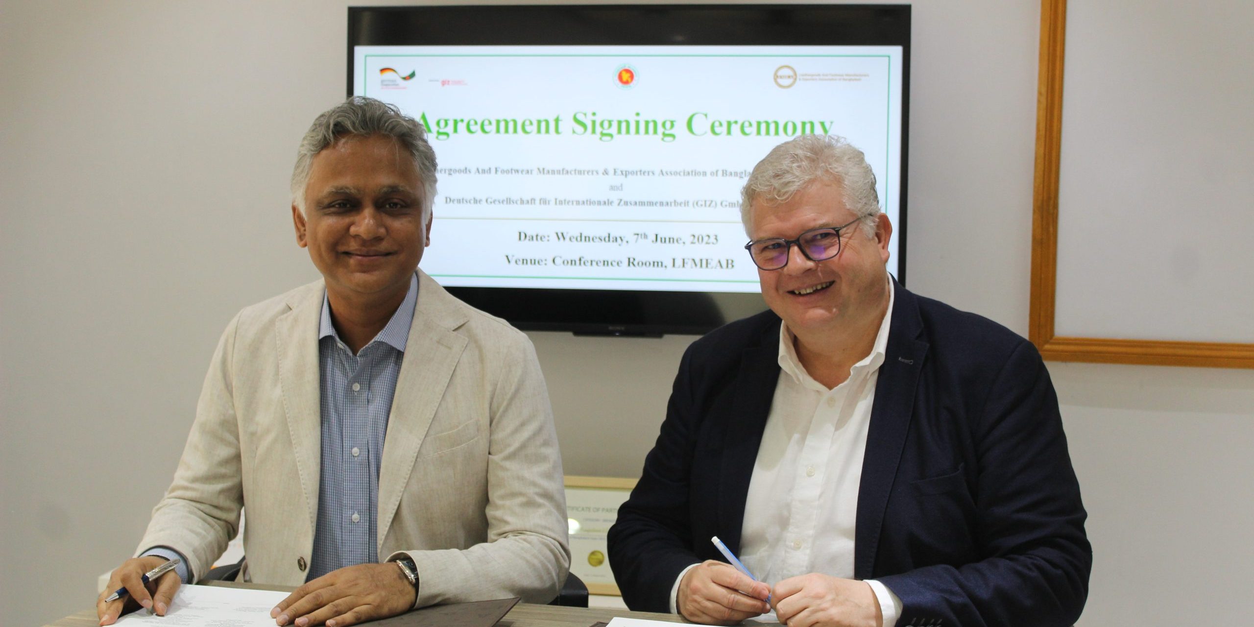 Leathergoods And Footwear Manufacturers & Exporters Association of Bangladesh (LFMEAB) signed a memorandum of understanding (MOU) with Deutsche Gesellschaft für Internationale Zusammenarbeit (GIZ) GmbH in Dhaka on 7th June 2023 in a signing ceremony at LFMEAB conference room.